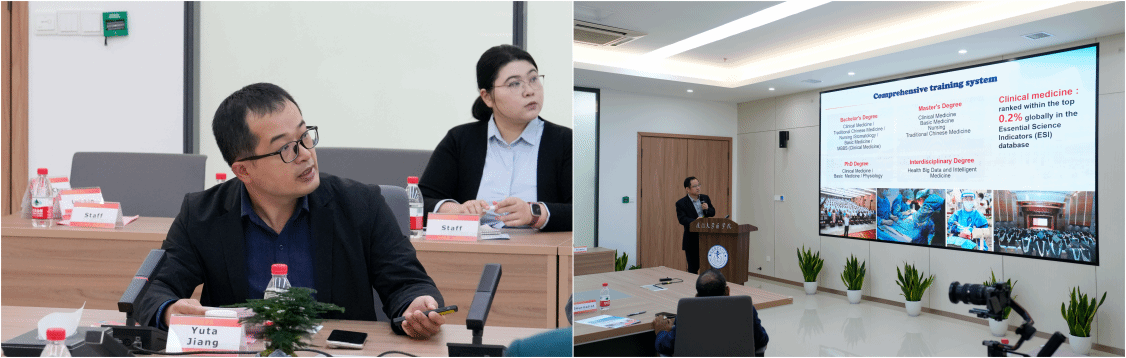 After the visit to the Clinical Skills Training Center, a discussion session was held in the conference room of Aili North Building of Xiamen University. Liu Wanyu, Deputy Director of Xiamen University's International Cooperation and Exchange Office, hosted the seminar. Mr. Jiang Yuta, Chief of Admission Office of Xiamen University, firstly introduced the overall situation of the university, and then Mr. Li Wei, Associate Dean of the School of Medicine, explained to the delegation in detail the cultivation of international students from India as well as the characteristics and development of the MBBS program.